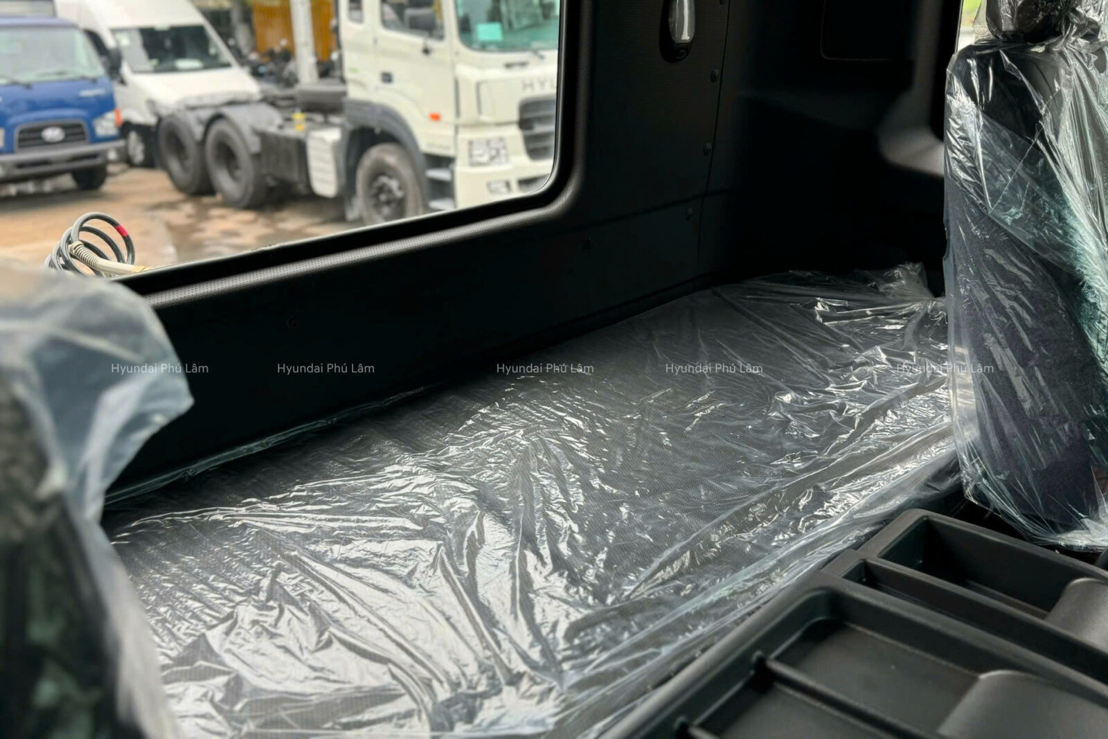 Đầu kéo Hyundai HD1000 được trang bị đầy đủ hệ thống âm thanh giải trí, radio có thẻ cắm usb, đĩa CD, giúp người lái có những phút giây thư giãn trong những giờ làm việc căng thẳng. Đặc biết, do tính mục đích công việc của loại đầu kéo HD1000 này là chuyên vận chuyển hàng hóa đường dài, nên xe được trang bị giường nằm sau ghế ngồi, giúp lái xe cần có những khoảng thời gian nghỉ ngơi sau 1 quãng đường dài điều khiển. Nếu quý khách chuyên chở hàng ở quãng đường ngắn, quý khách tham khảo thêm xe đầu kéo Hyundai HD700, đây là loại xe có sức kéo nhỏ hơn, tiêu hao nhiên liệu chỉ vào khoảng 21-22 lit/ 100km